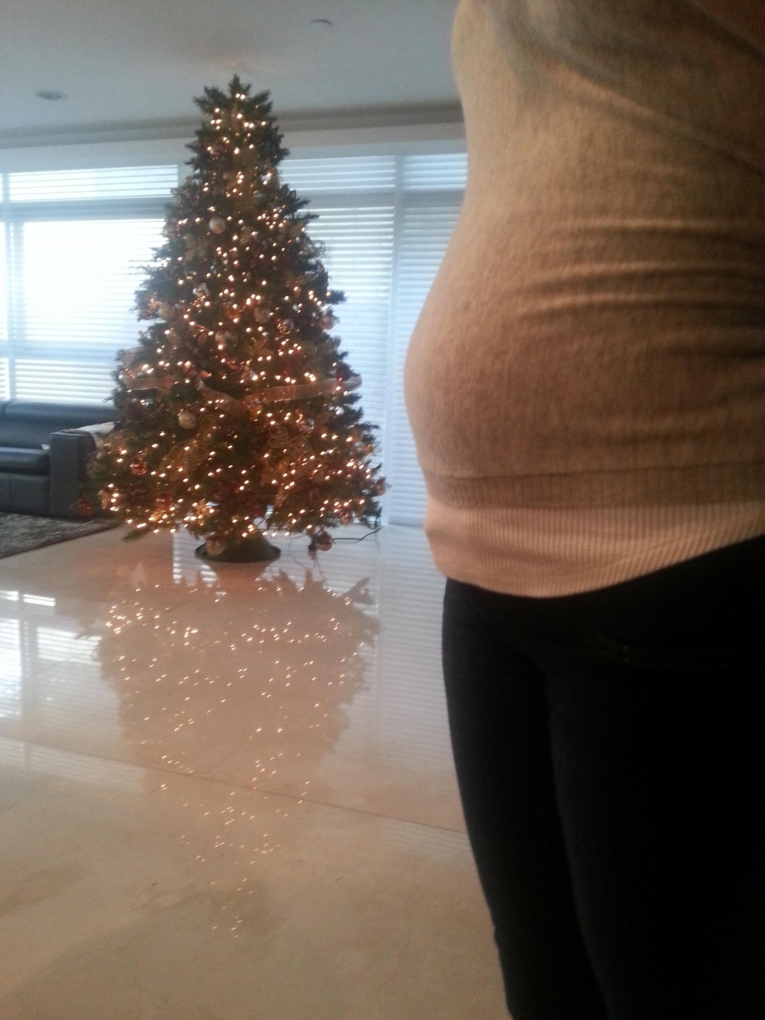 14) Жаки Бракамонтес вече има коремче и съпругът й Мартин Фуентес реши да сподели този момент в профила си в Туитър: "Коремчето ми, коледното дръвче и бебетата ни растат мигновено".